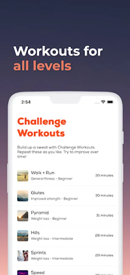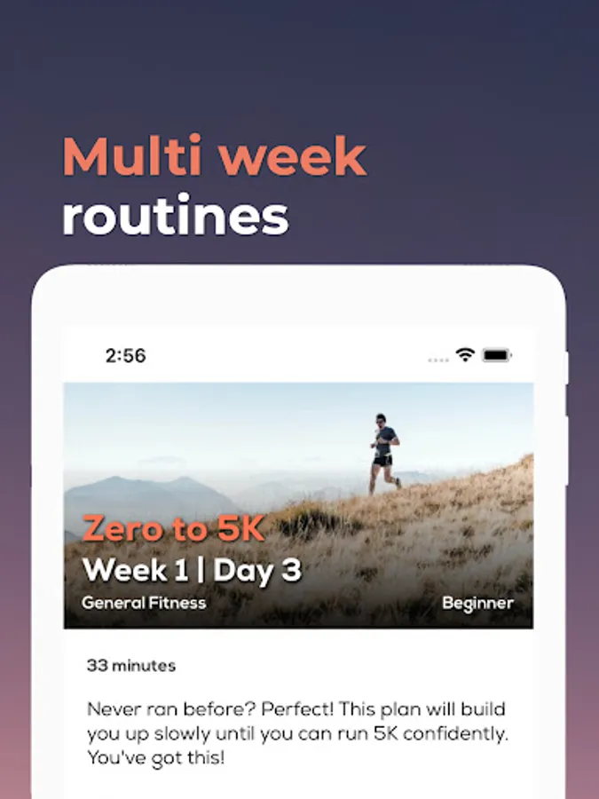 Start from just 2 days a week with interval running to improve your fitness with simple approachable routines. Everything is tracked to keep you motivated. Plans are built to help your body adapt and challenge itself while minimising risk of injury or burn out. Get off the couch and start running for weight loss or just health and fitness! Try out our running trainer today!