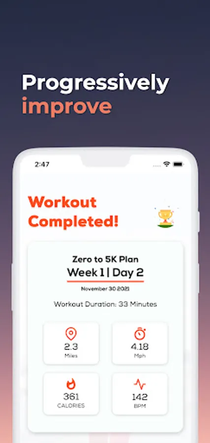 Log your workouts: With the ability to repeat your favorites. We'll record your progress so you can gradually improve from walking to a 10k runner. Your treadmill won't know what hit it!