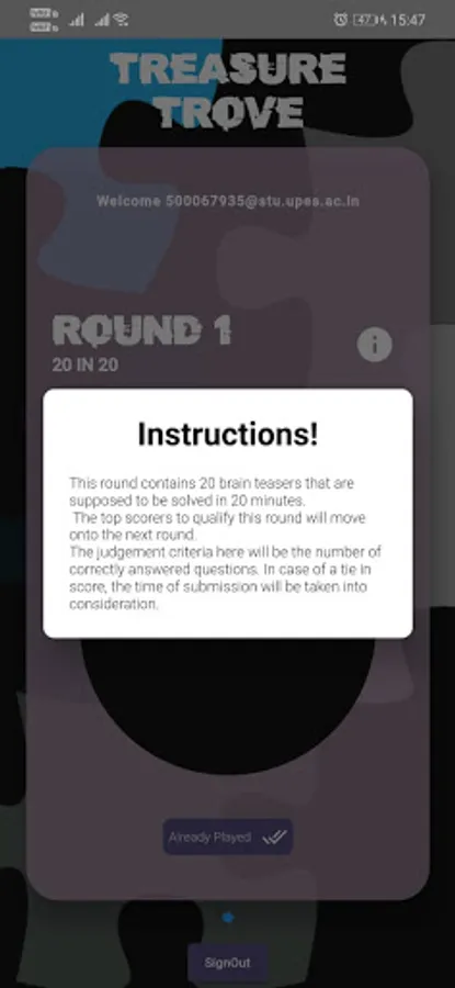 The participants will install an app provided by our team. The entire game is going to be conducted through this app. The event will be conducted in 3-rounds i.e. elimination round, the social media hunting round, and the final round.