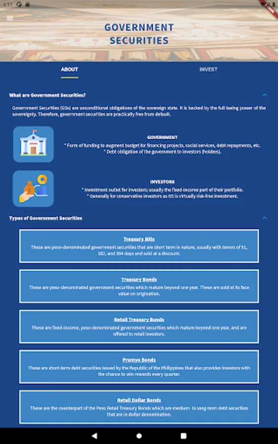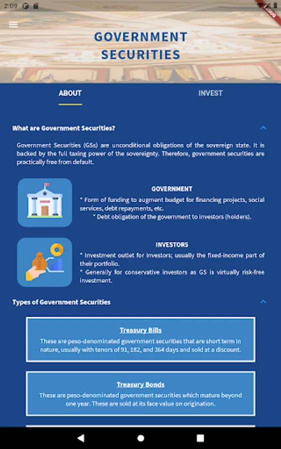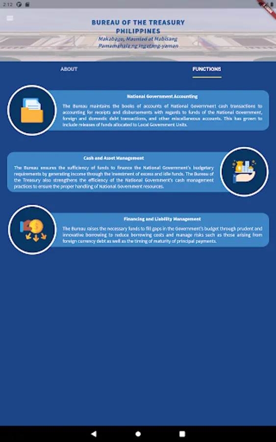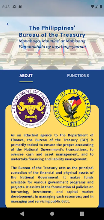 An informational mobile application from the Bureau of the Treasury (BTr) of the Republic of the Philippines.
