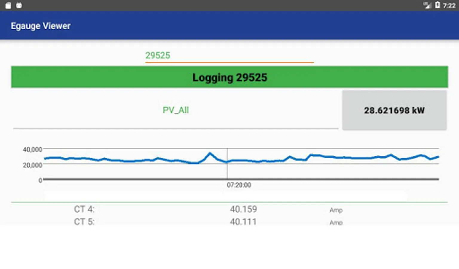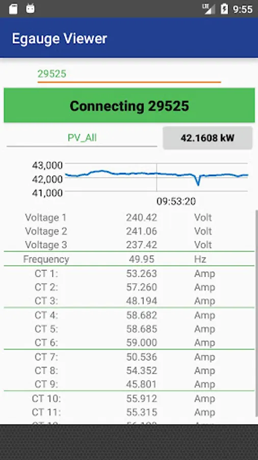 just enter the number of Your eGauge (usually 5 digits printed on Your device) and press "Start monitoring". the system should take about 10 seconds to load the first update and it will update every 10 seconds until close the app.