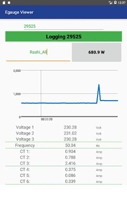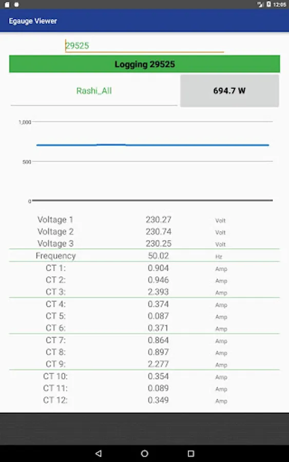 This app uses the egauge XML-API to show real time voltages, frequencies and currents of the current system and also plots a graph for the users choice of register.