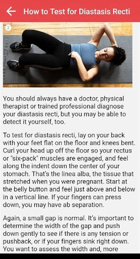 Diastasis Recti is an abdominal swelling with the separation of the rectus muscle lying parallel to the abdomen on both sides. One of the things that women want after birth is to get rid of this swelling. In our mobile application, exercises that reduce diastatis recti are shown.