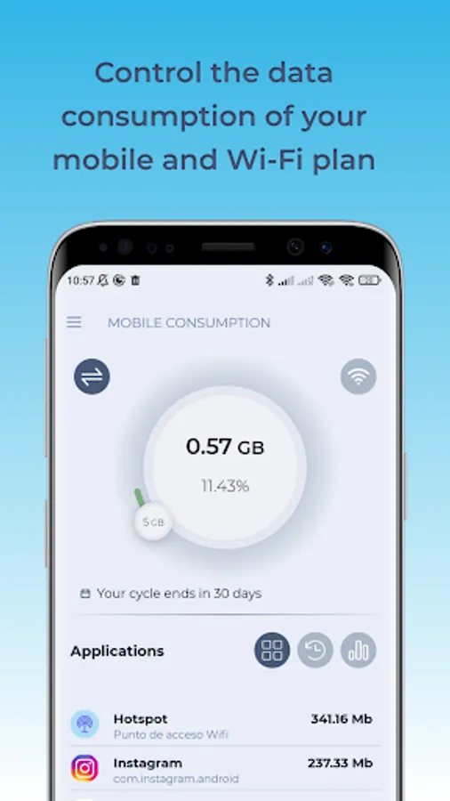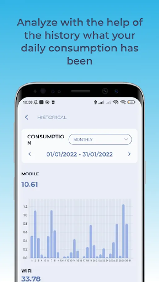 Within the data consumption section you will find the data consumption history where you can always have control of your daily, weekly and monthly data consumption.