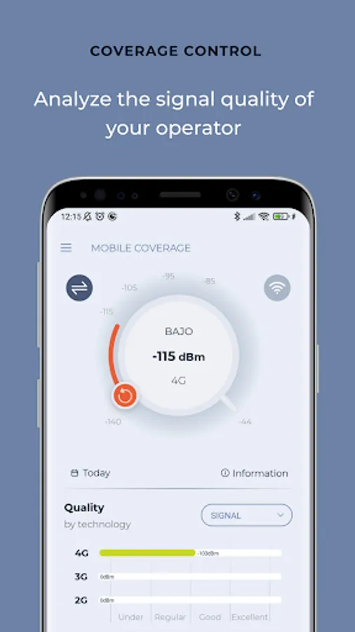 You will be able to measure the 2G, 3G, 4G, and 5G signal and know the percentage of time that the mobile device is in 2G, 3G, 4G, and 5G coverage and measure the signal in dBm. In this way, you can precisely know the connection's quality and later compare operators in your area.