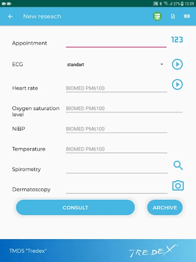 Приложение для сбора и отправки медицинских данных в медицинские информационные системы (МИС). Приложение совместимо только с продукцией ООО «Компания TREDEX» «Программно-аппаратный комплекс для телеметрии и телемедицинского консультирования ПАК ТМДН». За совместимость с иными телемедицинскими комплексами разработчик ответственности не несет.