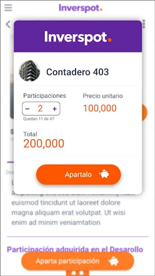 Once the development is selected, fill out your participation application. Soon, one of our consultants will contact you to corroborate your data and schedule the signing of your contract.