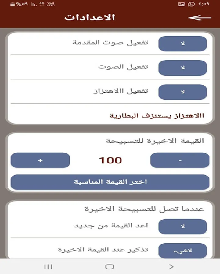 The application enables you to choose the remembrance or praise and the number of times and alert you when the number ends.