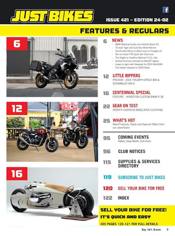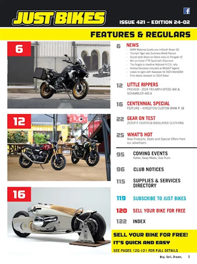 Whether you’re into collectable classics or the latest superbike, Just Bikes is the only magazine you need if you want to buy, sell or just dream. There’s no better place to find your next dream machine!
