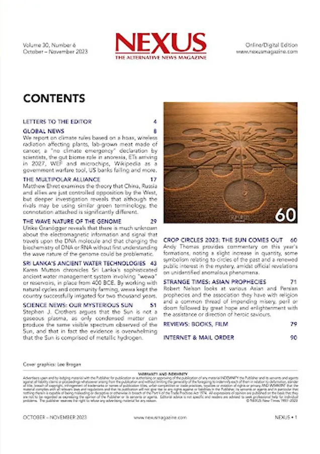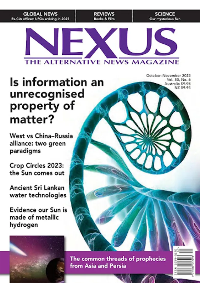 NEXUS is an international, bi-monthly, alternative news magazine covering health breakthroughs, future science and technology, suppressed news, free energy, religious revisionism, conspiracy, the environment, history and ancient mysteries, the mind, UFOs, paranormal and the unexplained. NEXUS Magazine is not affiliated with any political, religious or spiritual groups or organisations whatsoever, and has been published since 1986. The magazine is on sale in shops across Australia, New Zealand, UK, France, Italy, Holland, Greece, Poland, Croatia, Japan, Romania, Serbia and Russia.