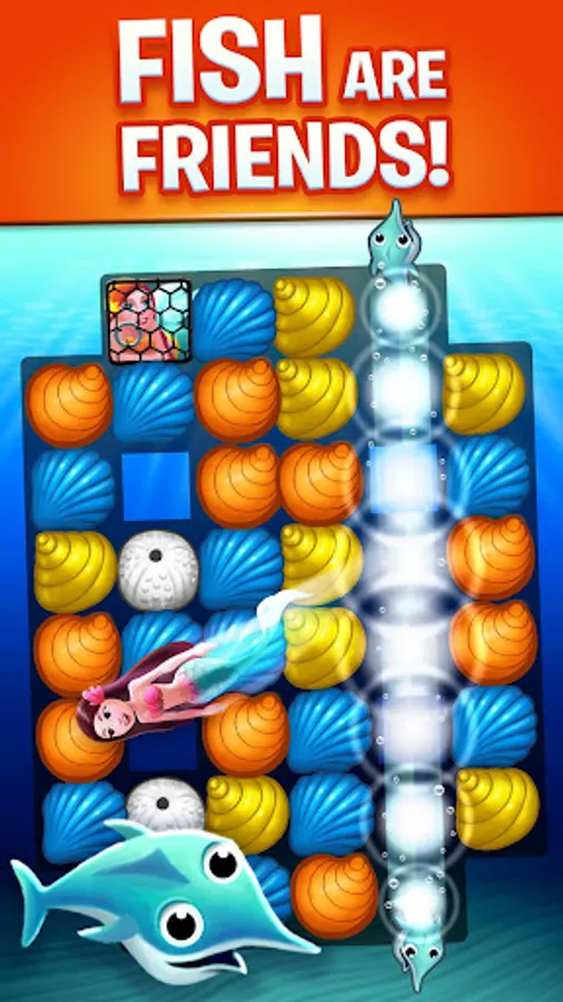 Match two or more shells of the same color to collect them. Clear a path and free the trapped mermaids! But remember, your moves are limited! Are you up for a challenge? Your unique talent in solving puzzles will be your greatest advantage while playing this super addictive game. Swim with the fishes in this aquatic adventure!
