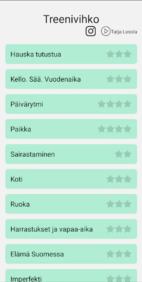 Treenivihko app is a part of Suomen kielen treenivihko -textbook which comes out this fall.