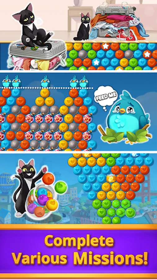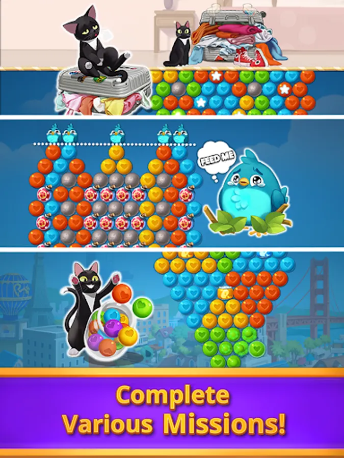 Pop colorful bubbles and join lovely Evelyn and her cute cat Leo on a dream-like adventure!