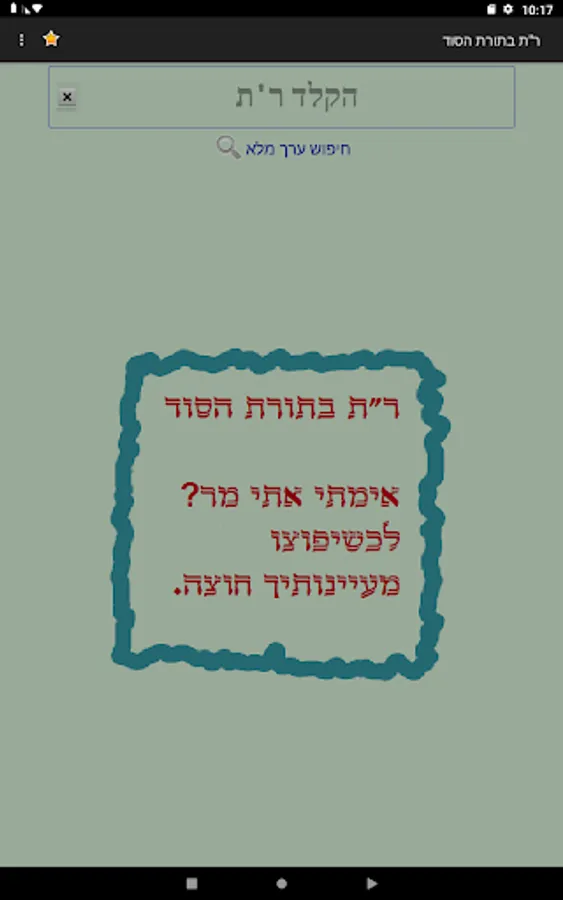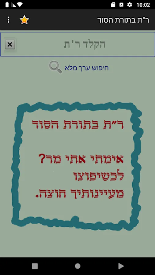 This applet serves as a tool for those who want to study Kabbalah and Chassidism, by deciphering the acronyms and abbreviations that appear in the Kabbalah and Chassidism and the extensions of the related concepts.