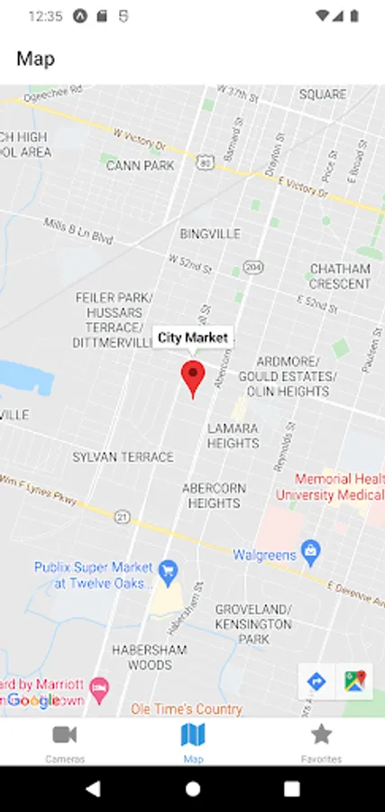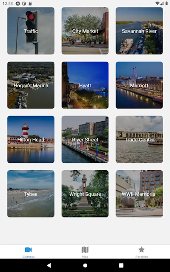 See where each cam is located on a map of the area, and add specific cams to your list of favorites.