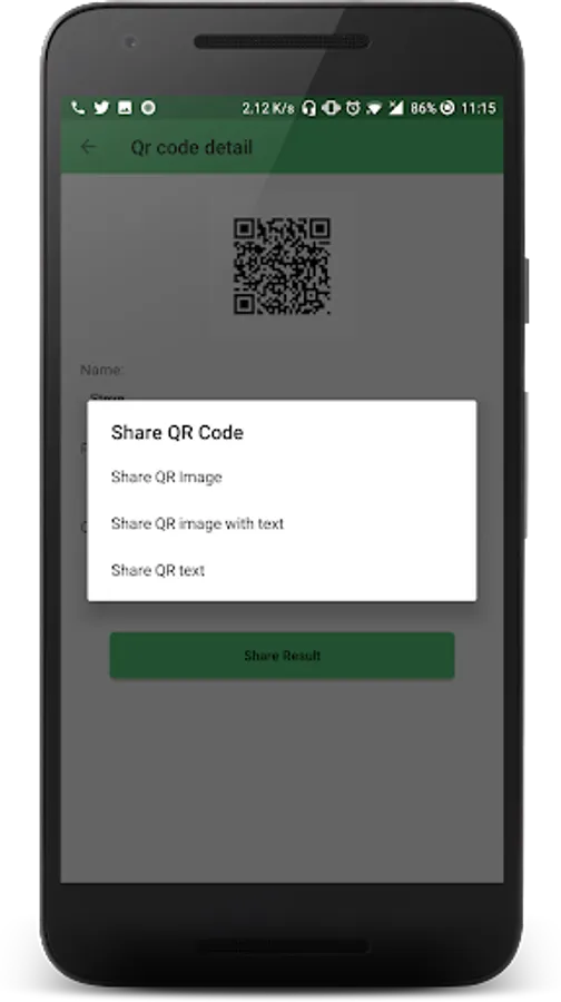 - Share and save scanning result and QR code with anyone and anywhere.