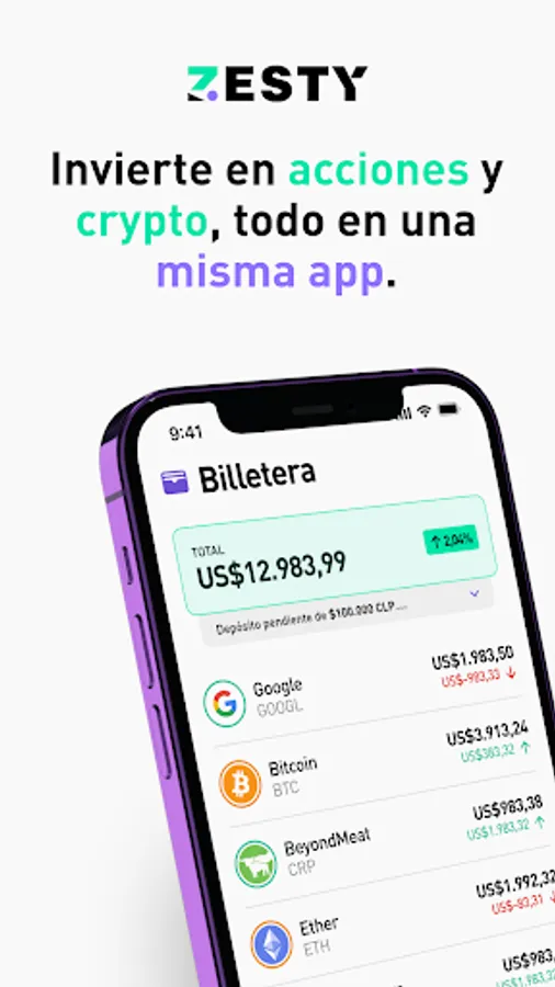 Sign up, deposit money in Chilean pesos, we convert them to dollars and leave them in your Zesty wallet.