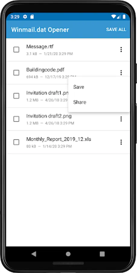 Do you sometimes get "Winmail.dat" files containing important documents? Winmail.dat Opener is a free app that allows you to open these files and view, save or share their contents.