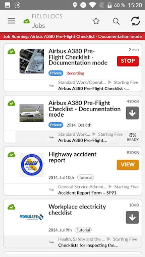In the same vein as templates, Jobs can capture everything around you through video, pictures, voice, or simply your own comments. Jobs can also track if desired a discrete or continuous GPS track hence rendering the context in an even more vivid manner.