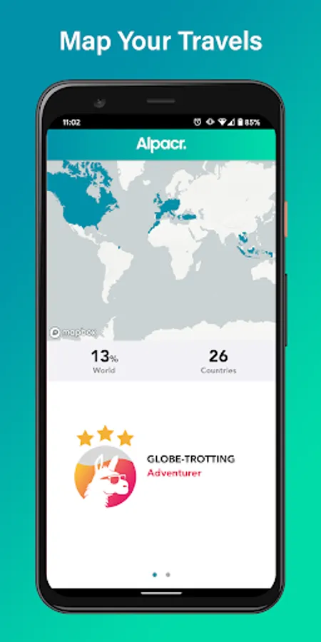 Fill out your profile to build a digital scratch map of the locations you have visited. The more adventurous you are, the more you level up. Compete with friends and others to show off your travels. As well as the world scratch map, you also have a list of all the flags of countries you have been to, the percentage of the world you have visited, and the number of countries. Join Alpacr today to compete with friends, and to keep track of the countries that you have been to.