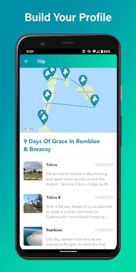 Build up your profile of all your adventurous experiences, and share your journey with friends. Enhance the way you look back on your travels; expand your profile by creating trip posts to simplify and organize your past and present travels of all the countries you've visited.