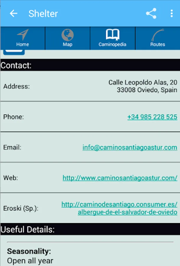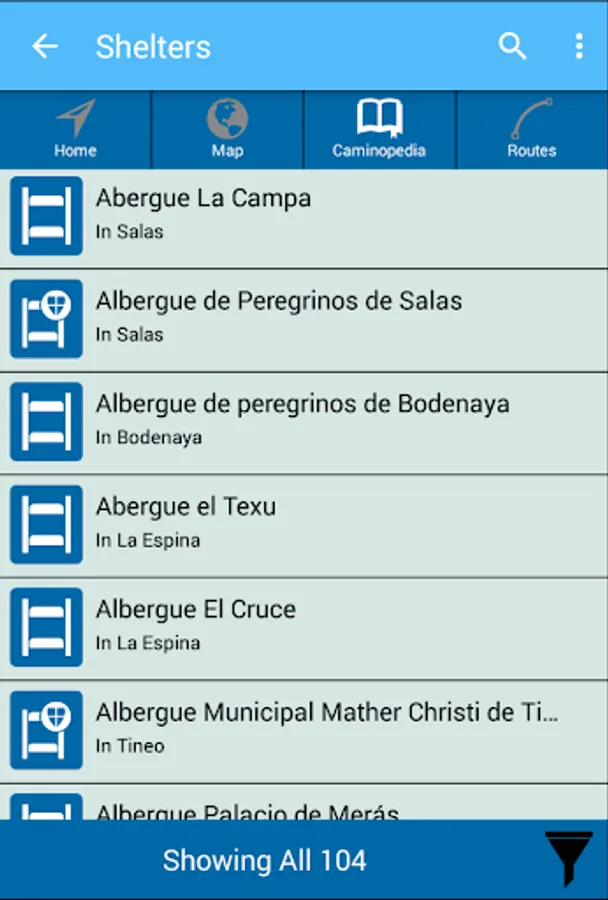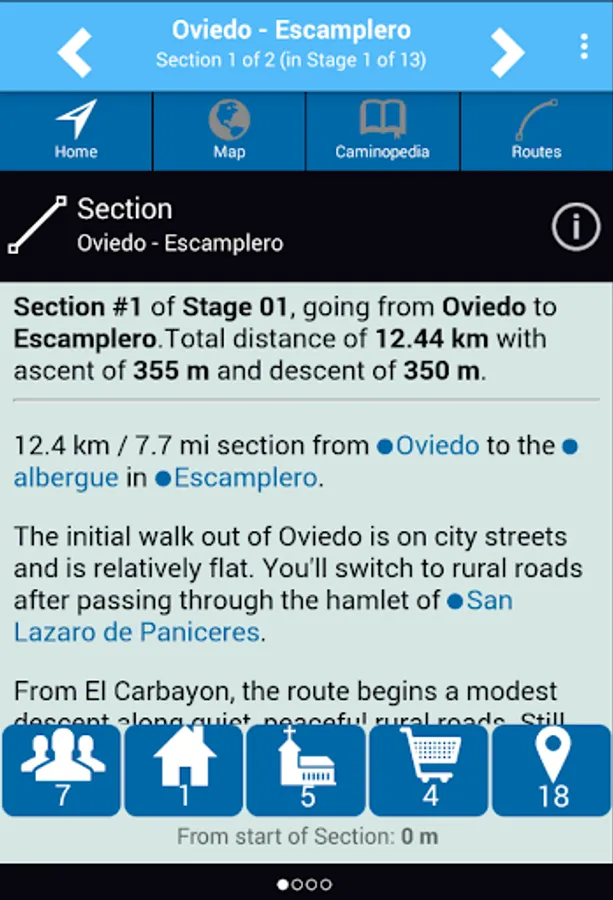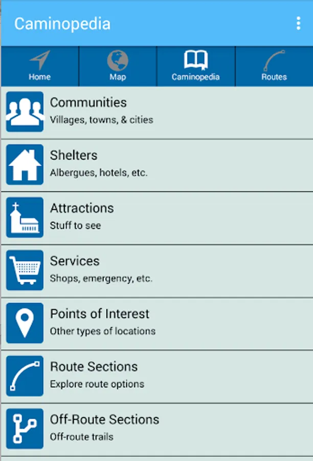 TrekRight’s ‘Camino Encyclopedia’ is packed with extensive interactive reference information organized into Communities, Shelters, Attractions, Services, Points of Interest, and Route Sections. Everything can be searched and filtered, viewed on a map, notes can be added (anything from a simple reservation number to a copy-and-pasted blurb from a website), and more. Handy information (literally) at your fingertips!