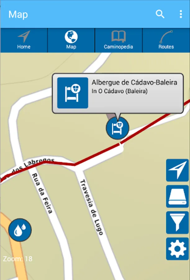 Powerful, flexible maps that display your current location on your selected route along with pins showing all the locations included in the Caminopedia (just touch a pin to open its related Caminopedia entry). Easily filter and do searches. Detailed, high-quality zoom-able offline maps are included, so you have full access to maps even without Internet access. When you do have an Internet connection, Google Maps are also available which can be configured to show street maps, satellite view, terrain, or a hybrid. Where supported, you can even switch into Google Street View! Completely transform how you ‘see’ your surroundings on the Camino.