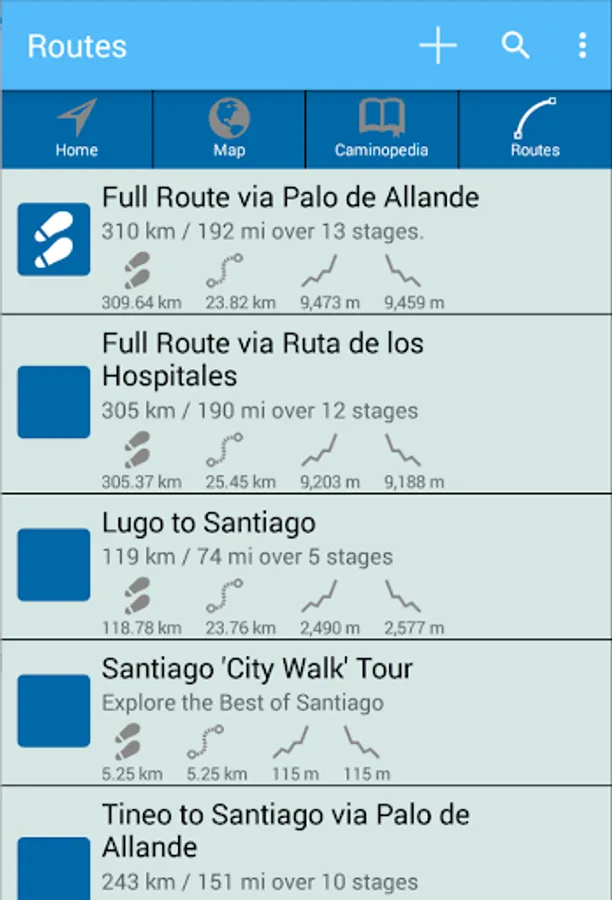 TrekRight makes it easy to plan your route (including configuring the sections you want to follow), organize it into custom stages, and review distances and elevations (including a handy interactive Elevation Profile Chart). Comes pre-defined with popular route options. Review and rate albergues, flag locations of interest as ‘favorites’, add your own notes, and more. Be prepared!