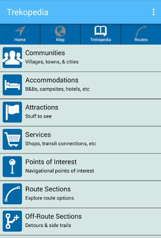 TrekRight’s content is regularly being updated and expanded based on the latest information available to us. You can check for content updates directly inside TrekRight and download our database whenever it is convenient for you (even on the trail), without having to connect to the Play store. Always be up to date!