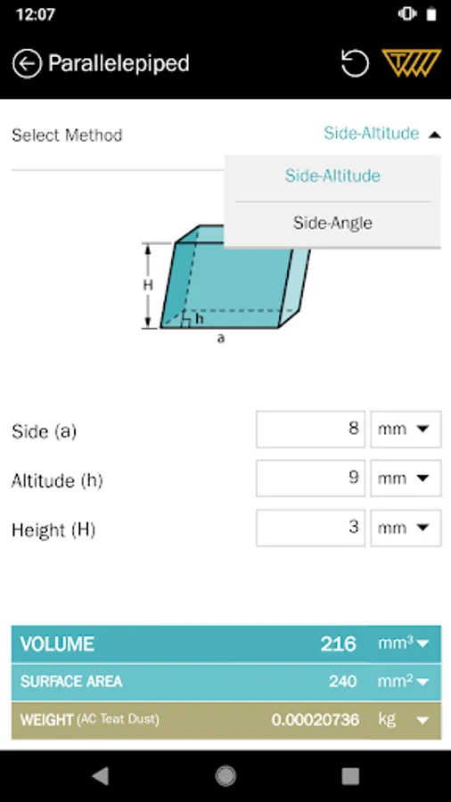- Calculate the volume directly or start with the area of a 2D shape and then select an associated 3D shape to get the volume.