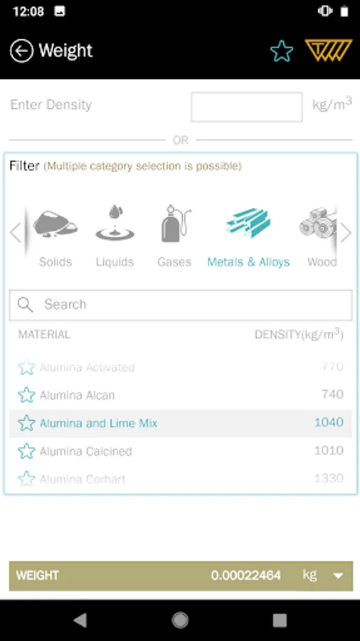 - Choose from metals, wood, liquids and more. Fill your shape with Almonds, Aluminium or any one of 1500 materials to calculate the weight.
