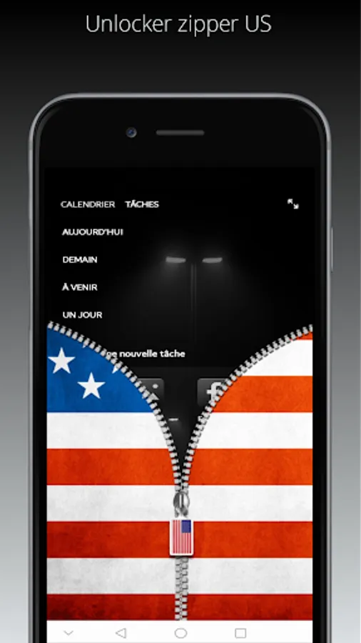 slide down the zipper to unlock your screen with the uncle sam flag