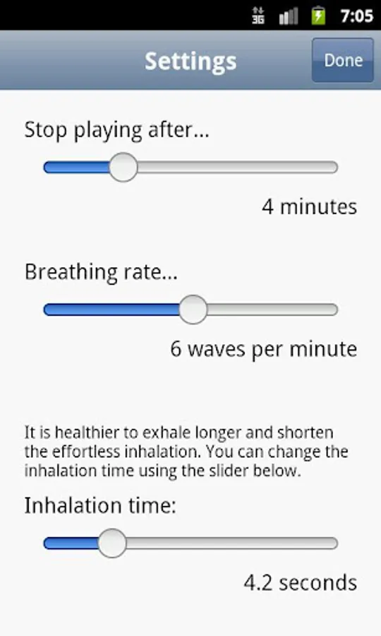 The default setting is a 3 minute long exercise. This is what it takes to lower your level of stress.