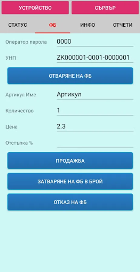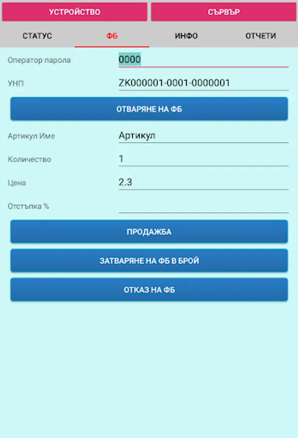 The application demonstrates the basic operations and functions of Tremol brand fiscal devices by using ZFPLabServer as a communication channel.