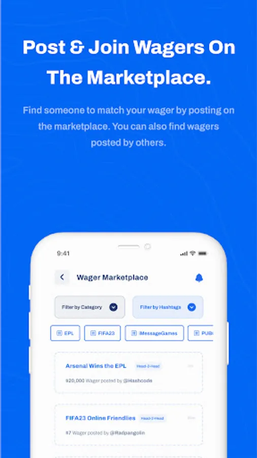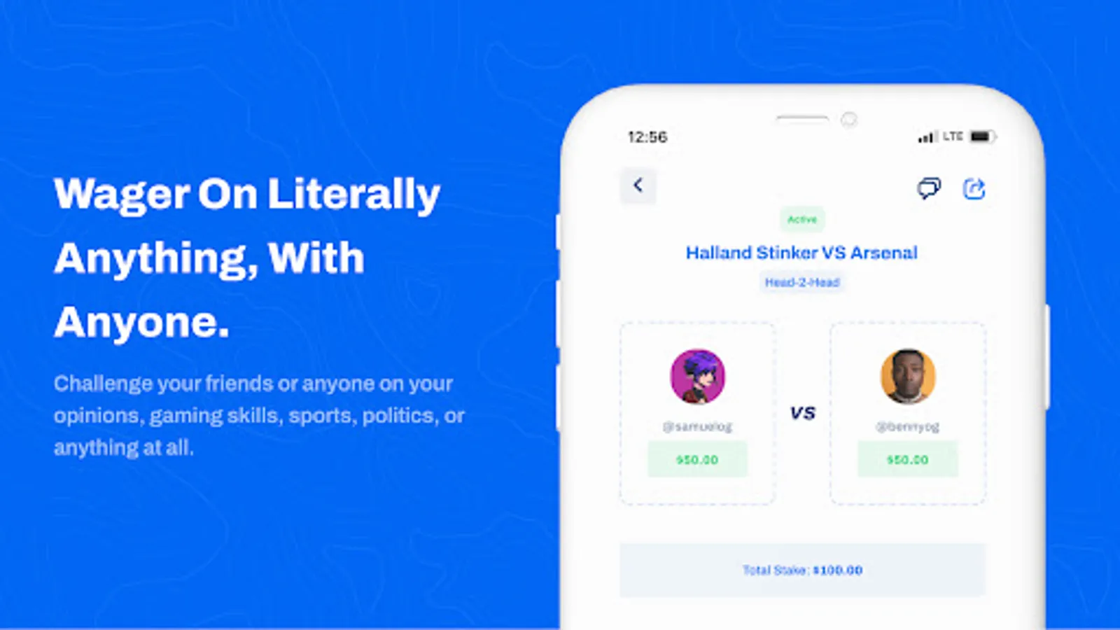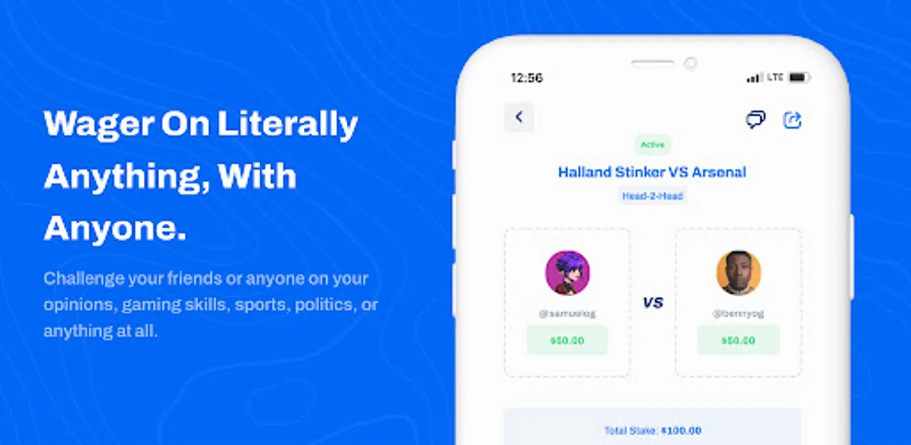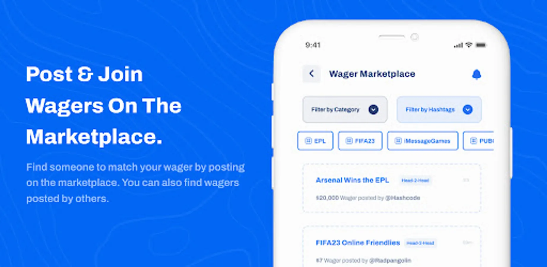 Create wagers with anyone on your own terms, real life events, sports, politics, the price of a stock or crypto, your beliefs or opinions, or anything at all.