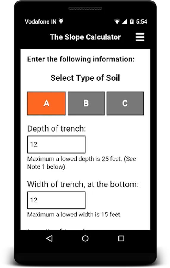 Underground Safety Equipment provides solutions that make construction work safer, more productive, and more profitable. This Slope Calculator is a handy, easy-to-use tool that compares the “pros and cons” of sloping an excavation versus using shoring and shielding equipment. Simply enter the Soil Type you will be are working in —Type A, B, or C — along with the dimensions of your excavation to see the calculated results, AND a drawing to guide you and your crews. You can even save the results and data as a PDF, and send them to anyone, anywhere via e-mail.