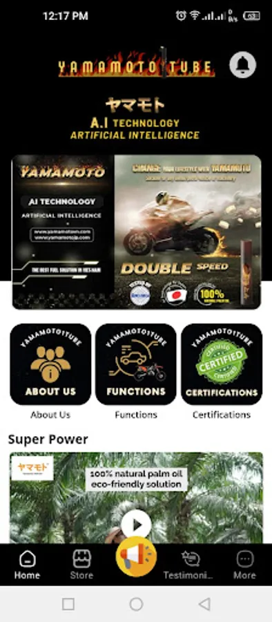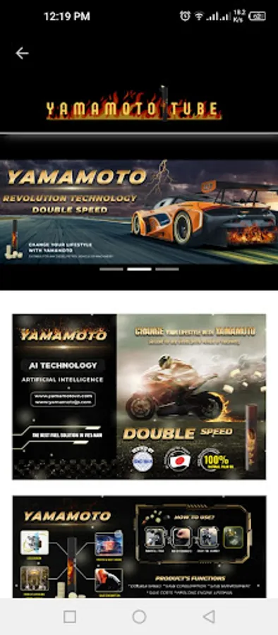 The Global Climate has been changed dramatically over years due to fast development of many industries. After years doing research, Mr. Yamamoto Yusuke Create a product called "YAMAMOTO" in 2000, which helped to reduced the carbon dioxide(CO2) released into the environment from Transportation activities. YAMAMOTO is made from 100% Palm Oil, it is a green Product and not Harmful to human body and to the environment. Through Years of developing, in 2010, Mr. Yamamoto Yusuke combine Yamamoto with the latest technology called Artificial Intelligence(A.I), to become the revolution product which can use for all kinds of transportation like motor bikes, cars, trucks, vessel and generator as well.