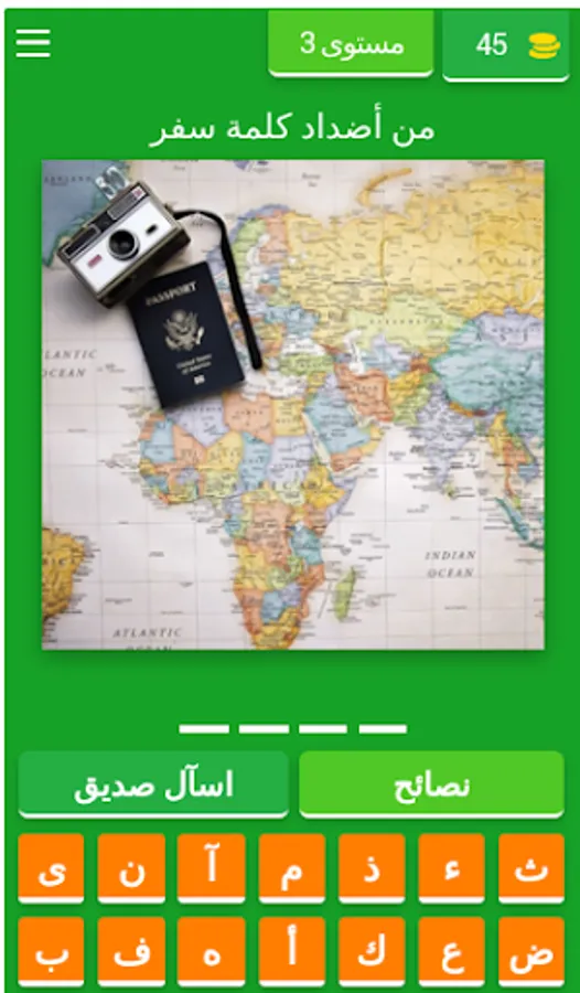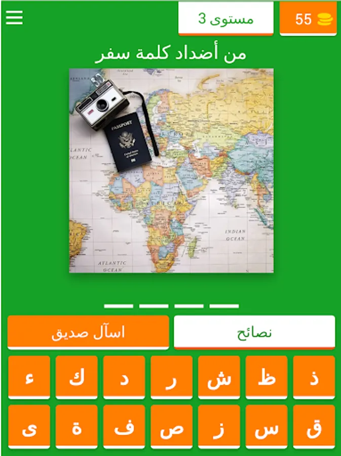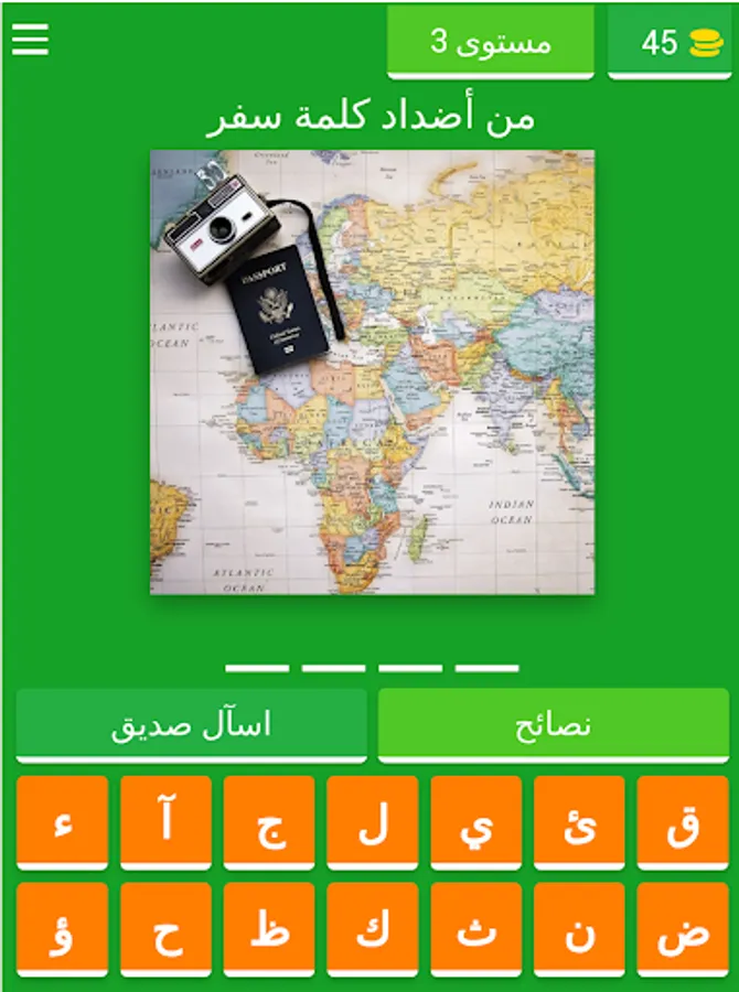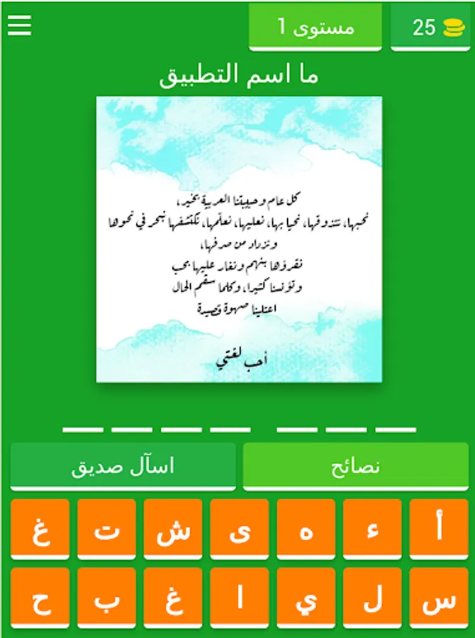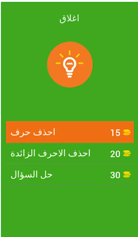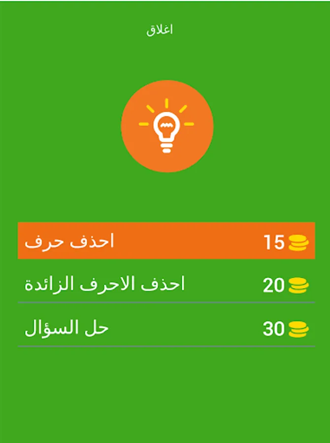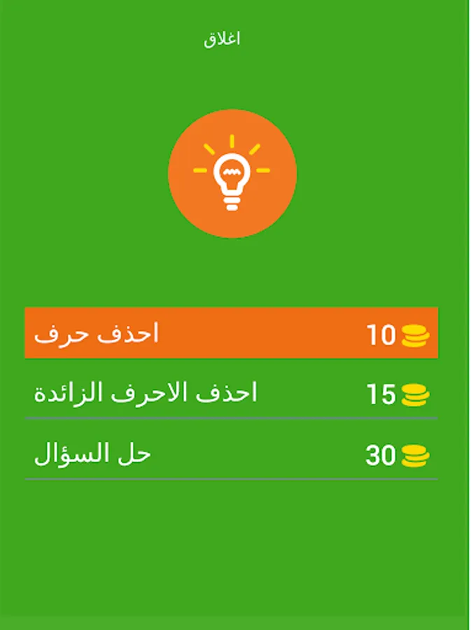 3- If you are unable to answer, you can use two aids that are removed from the coins/points: Ask a friend, or use hints as an aid (such as showing a letter, deleting extra characters, or solving the question).