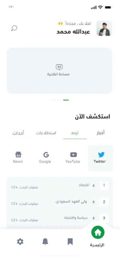 - Through the "News" section, you can read the brief news of what is happening on the pages of social media platforms, including "Twitter", to learn about what is happening in Saudi society in general.