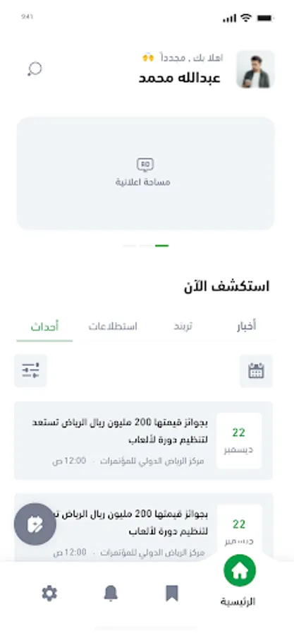 - The "Events" section provides you with a follow-up to all the events taking place in Saudi Arabia in various fields.