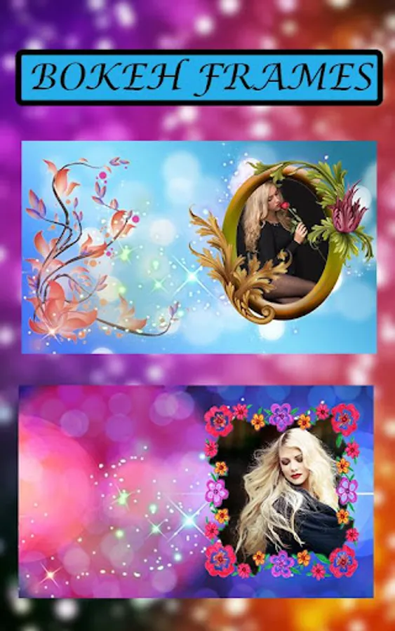 2.Multiple frames such as Rose, Love, Glitter, Flower, Hoarding, Bokeh, Book, Nature, Aquarium are available to match with the theme of your photo.