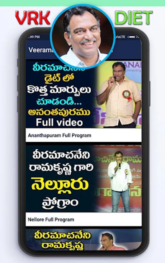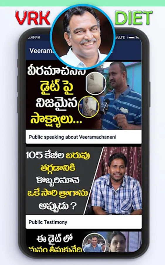 This application shows information about Sri Veeramachaneni Ramakrishna diet programs which helps people reducing weight. This includes various Veeramanchineni Intervies, Diet plan, Food videos, Plublic Response.
