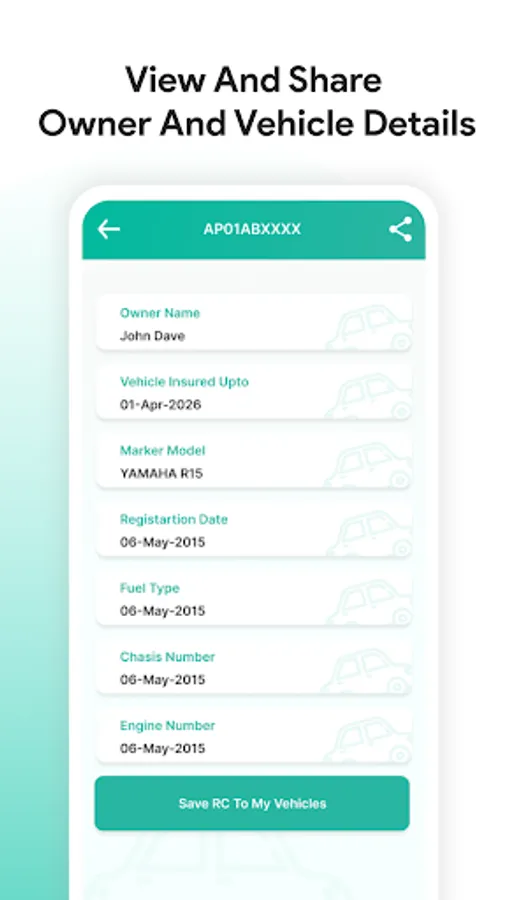 Disclaimer : We are not related to any RTO. All details shown in the app about vehicle owners are available on the Parivahan website(https://parivahan.gov.in/parivahan/). We are only acting as an intermediary platform to make this information available to users easily via the app.