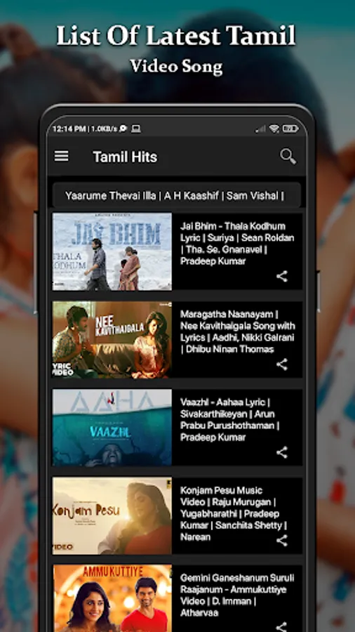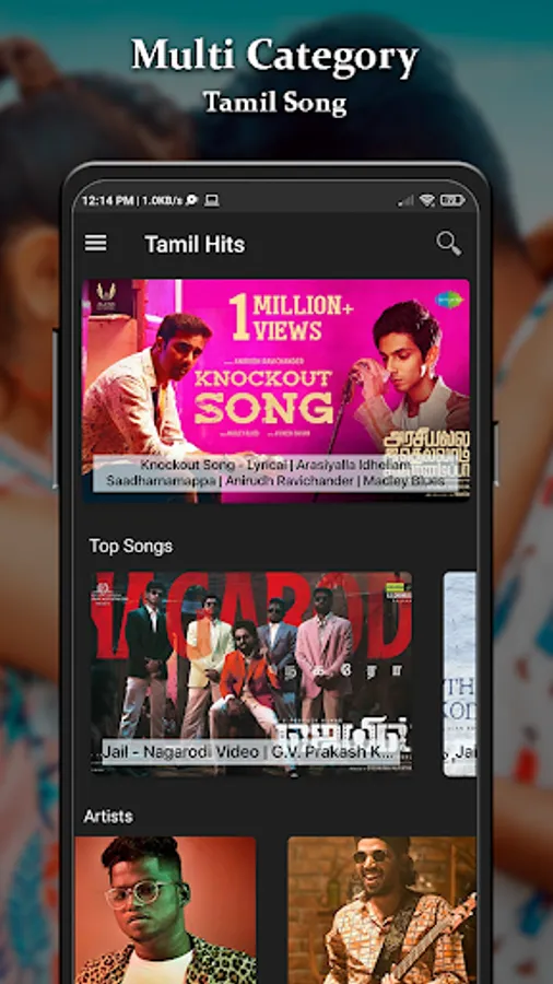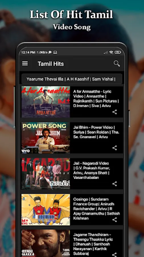 Tamil songs video app comes with Biggest collection of Hit Tamil Songs and Tamil HD Videos.