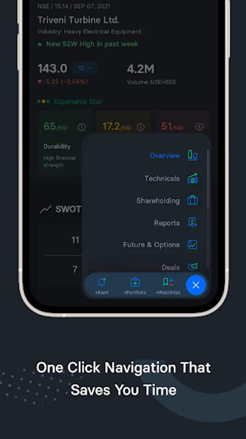The Trendlyne mobile app brings you NSE and BSE market feeds, Forecaster - Consensus estimates and share price targets, and Trendlyne's trademark DVM Stock Scores. It also brings stock screeners, F&O (with options screeners) unlimited alerts, trend lines, stock recommendations from analysts, SWOT, portfolio and watchlist tools, and a newsfeed, in one powerful app.