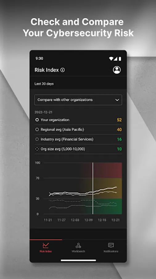 - Compare your risk index against the regional average, industry average, and other similar size organizations.