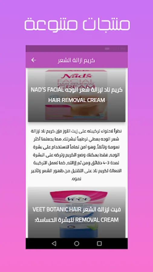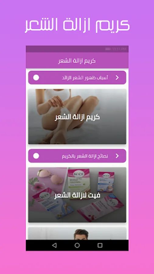 We thank you for choosing the application of hair removal cream, and we are ready to satisfy our audience with useful and renewable content, and because you are wonderful, we are always ready to meet what you want, just write to us through the application.