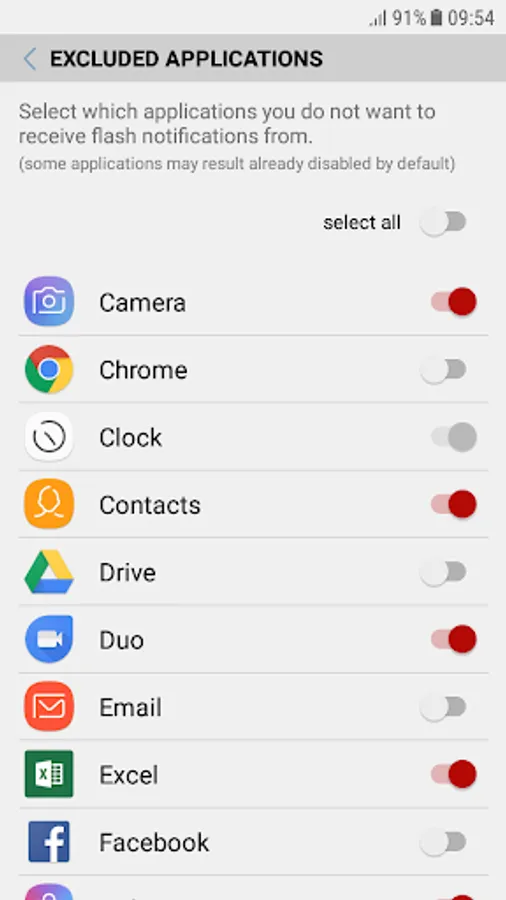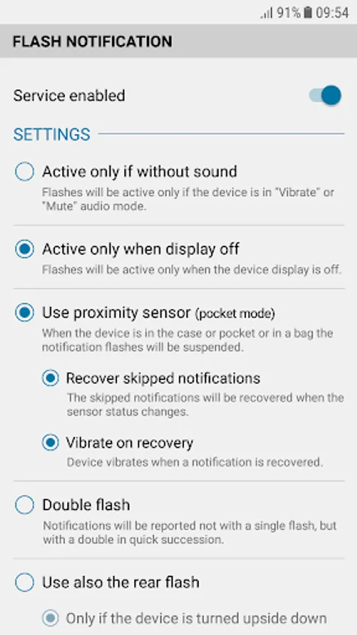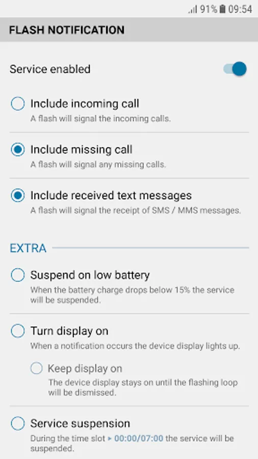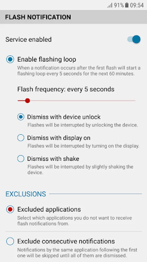 • flash notifications for the unread badges received from compatible applications and customizable by app exclusions (only on Samsung devices with TouchWiz based ROM)
