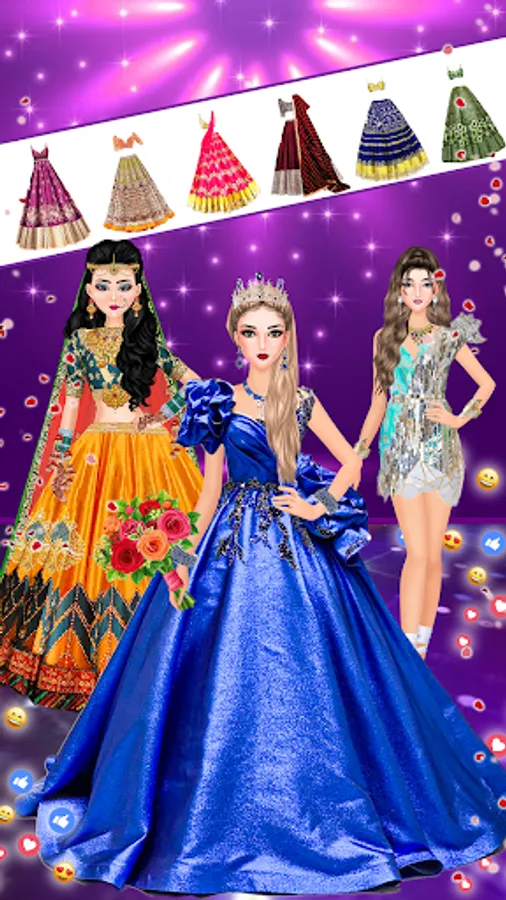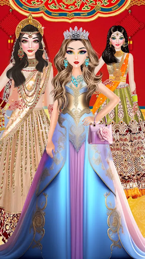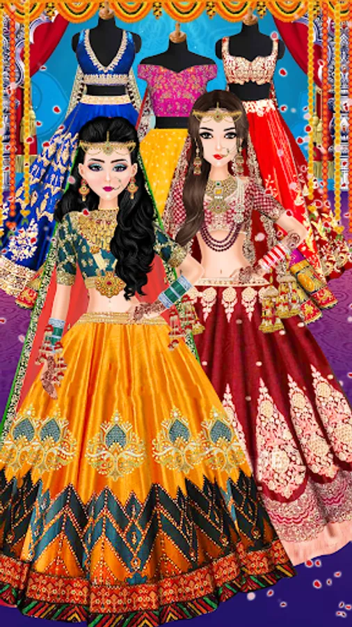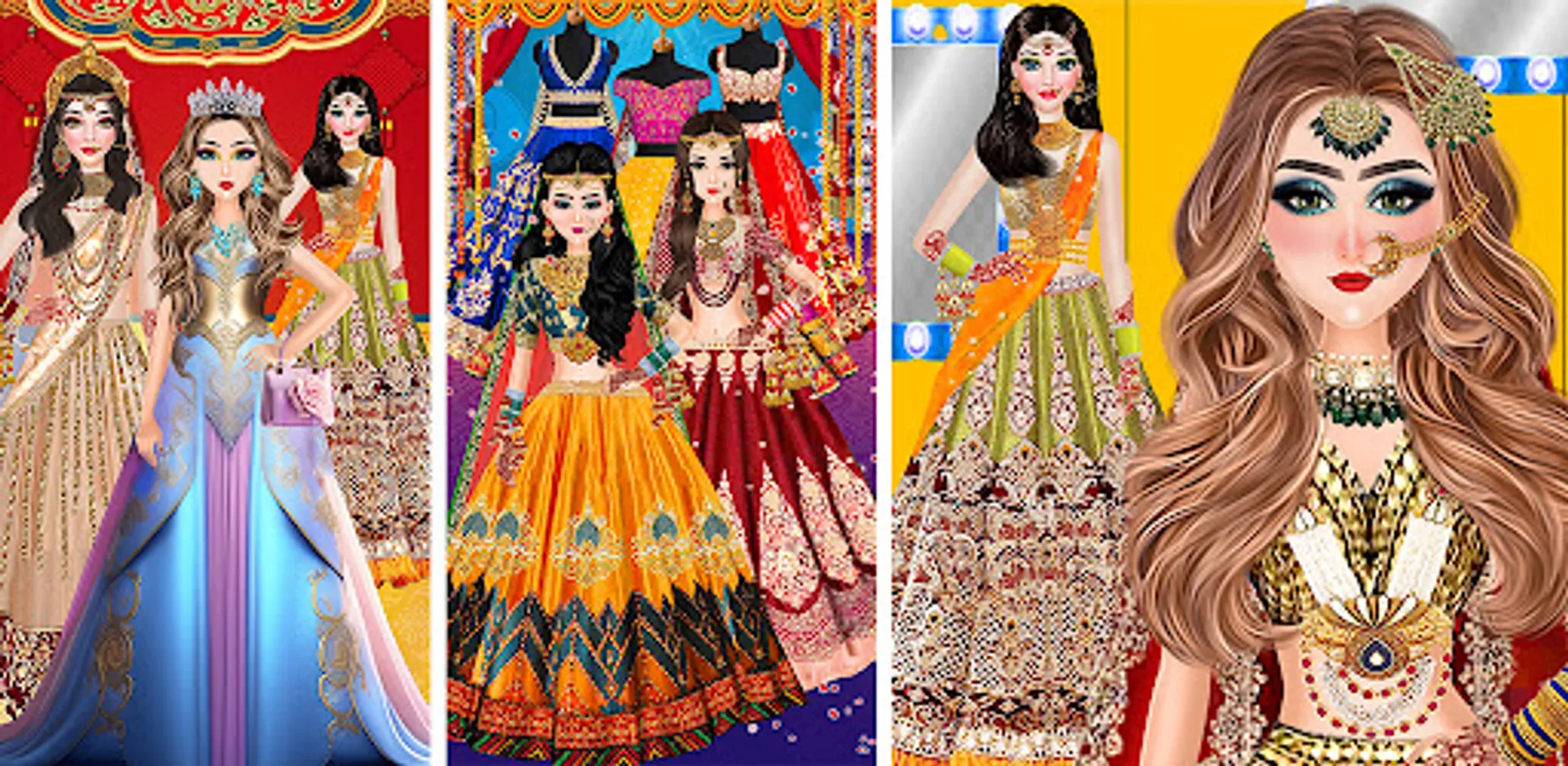 - Beautiful dresses and dress up items for the doll Indian fashion wedding salon game.