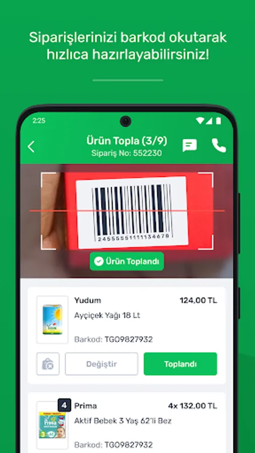 - You can prepare your orders easily and quickly by scanning barcodes.